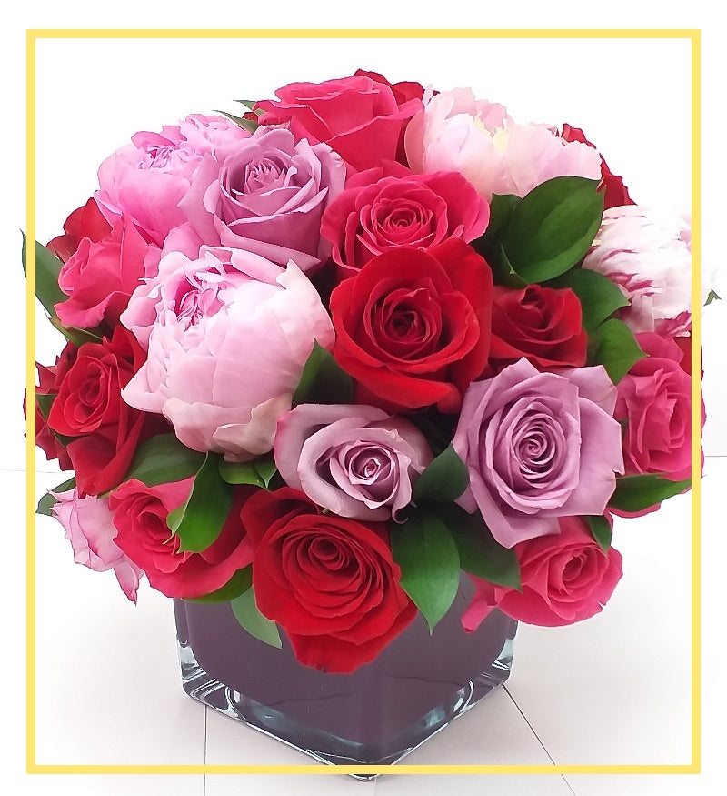 Spark some passion and fall in love again with the Love & Passion hand tied bouquet or square vase arrangement. A romantic night filled with new steamy memories, is the perfect way to celebrate your anniversary.