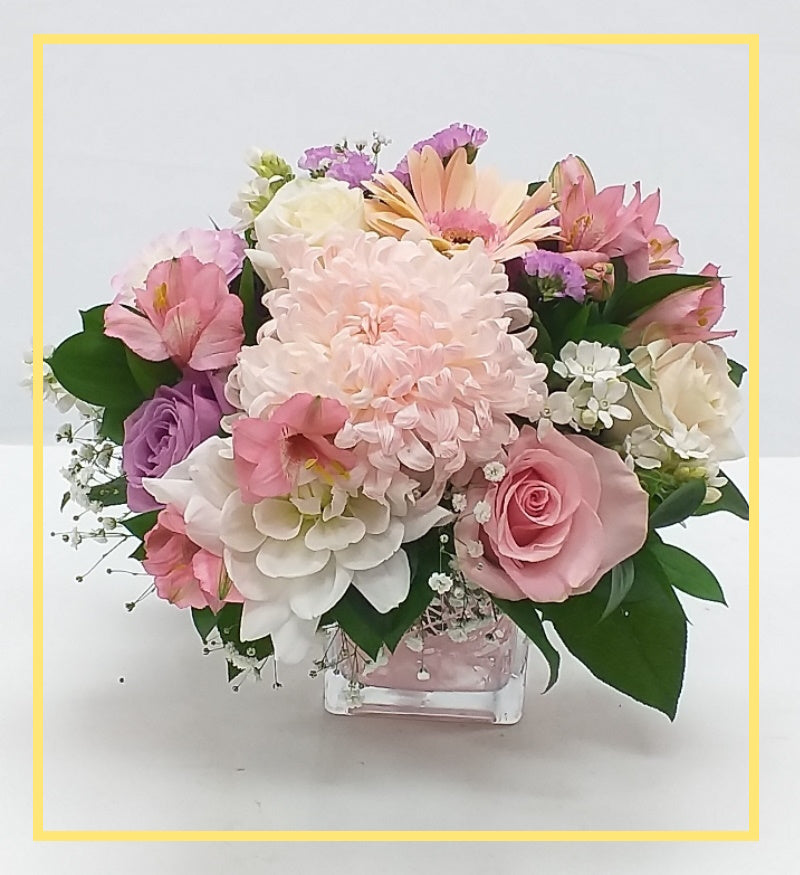 Care is taken to maintain the style, theme and colour scheme of the arrangement, using flowers of equal value. Additionally, the substitution of certain keepsake items may be necessary due to increased demand, especially during major holidays.